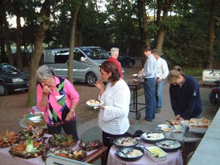 ... ontbijt op zondagochtend, daarna groep 1 te paard naar Leende, ...