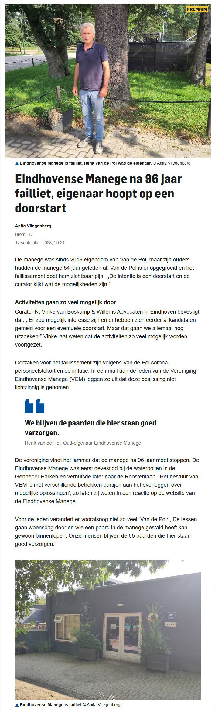 | 13 sep 2023 | Eindhovense manege vraagt faillissement aan | EquNews.nl | |