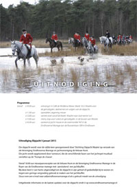 De slipjacht Waalre heeft zich ontwikkeld tot een mooie, sportieve en vooral gezellige happening met inmiddels vele supporters . De slipjacht wordt georganiseerd door de activiteiten commissie van de Vereniging Eindhovense Manege, genaamd “ stichting Slipjacht Waalre”. Het unieke deze slipjacht is dat de slipjacht Waare uitstekend te volgen is met een fiets, bromfiets of andersoortige tweewielers. Evenals voorgaande edities wordt er een speciale route uitgezet voor deze steeds groter wordende groep volgers en supporters. De ontvangst van de deelnemers, volgers en begeleiders van de Slipjacht is vanaf 10.30 uur in de Wolderse Wever aan de Markt in Waalre. Omstreeks 11.30 uur is het opzadelen van de paarden en verzamelen op de markt in Waalre. De slipjacht Waalre wordt verreden in 3 of 4 runs met een sherry stop rond 15.15 uur bij Landgoed Eckenrode aan de Koningin Wilhelminalaan 66 in Waalre. Er zijn nog twee routes in onderzoek voor de eerste run van de slipjacht. Afhankelijk van het weer en de gesteldheid van de ondergrond begin januari 2013 wordt de route vlak voor de slipjacht definitief bepaald. Na de slipjacht is er vanaf 18.00 uur een Nieuwjaarsreceptie voor de leden van de Veluwe Hunt en de leden van de Vereniging Eindhovense Manege met sterke verhalen, gezelligheid en een jacht buffet. VEM-leden met partners en introducés zijn van harte welkom tijdens deze nieuwjaarsreceptie. Aan het jachtbuffet kunnen de volgers, deelnemers en genodigden deelnemen tegen een kleine financiële vergoeding van € 15,00 per persoon. Graag opgeven als je wilt deelnemen aan de jacht als volger en aan het jachtbuffet tot uiterlijk vrijdagavond 4 januari. Alles natuurlijk opgevrolijkt door muziek verzorgd door een live DJ.Informatie over de jacht zal te vinden zijn op de diverse publicaties in de foyer van de manege.